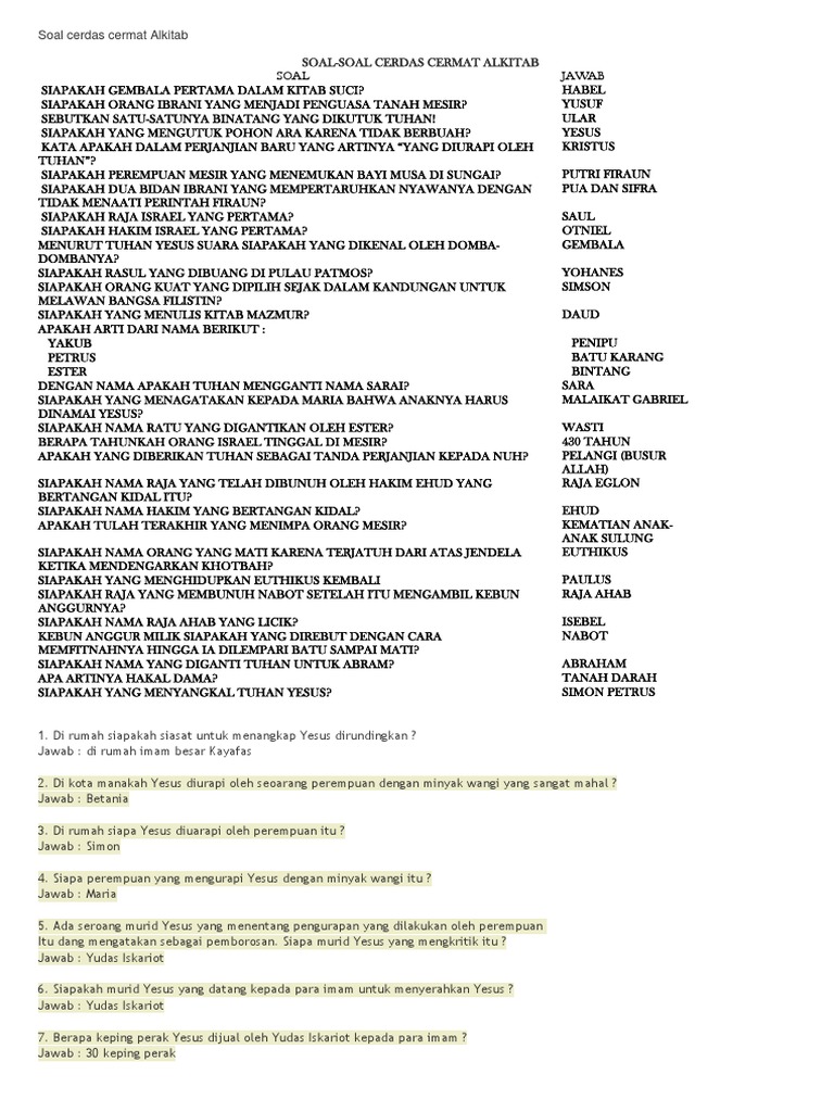 Soal Jawaban Cerdas Cermat Alkitab