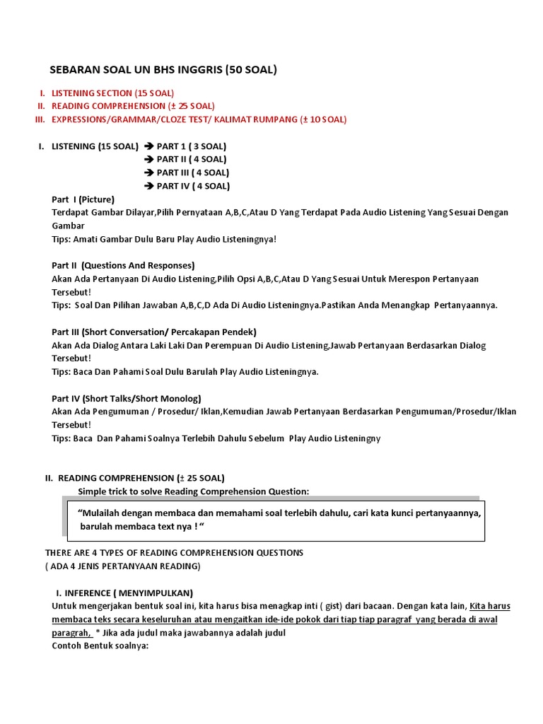 Contoh Soal Un Bahasa Inggris Smk Text For Question