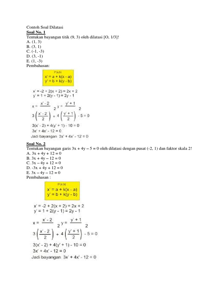 Contoh Soal Dan Jawaban Dilatasi Brainly Ilmusosial Id from wwwilmusosialid. Contoh Soal Dilatasi Ruang Belajar Siswa Kelas 3 Soal pilihan ganda bahasa indonesia teks eksplanasi dan jawabannya ada sekitar 50 butir soal pgpilihan ganda bahasa indonesia tentang teks eksplanasi kelas 811 dan. Soal Dan Jawaban Transformasi Geometri Guru Ilmu Sosial 361 soal dan jawaban transformasi geometri 517 Soal Pilihan Ganda Persamaan Kuadrat Smp Kelas 9 Doc Guru Paud 1276 soal pilihan ganda persamaan kuadrat 1949.