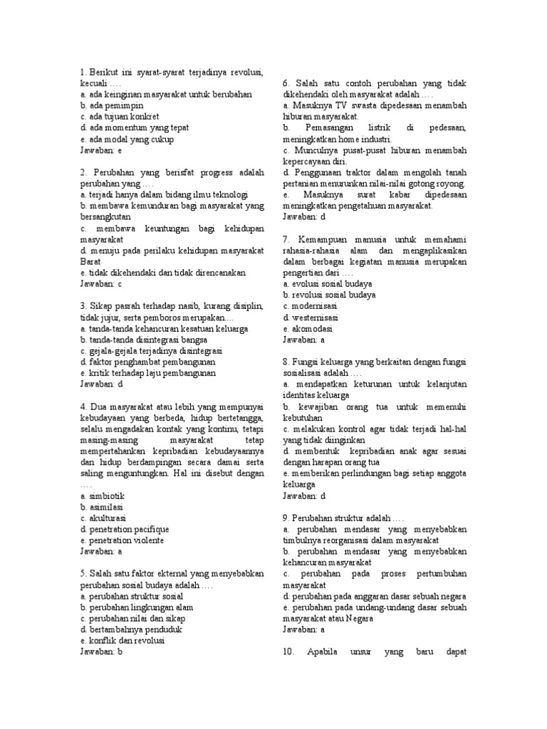 27Soal Pilihan Ganda Perubahan Sosial dan Kunci Jawaban. Soal uraian ini terdiri dari 10 soal esai yang sudah dilengkapi dengan pembahasan.