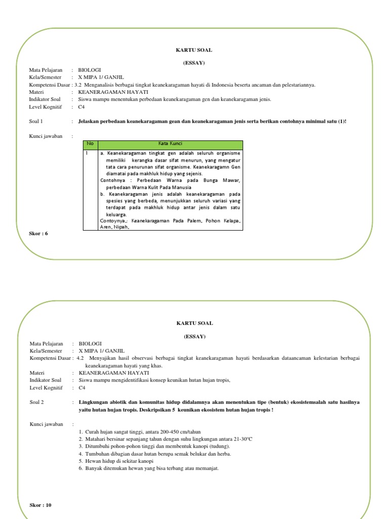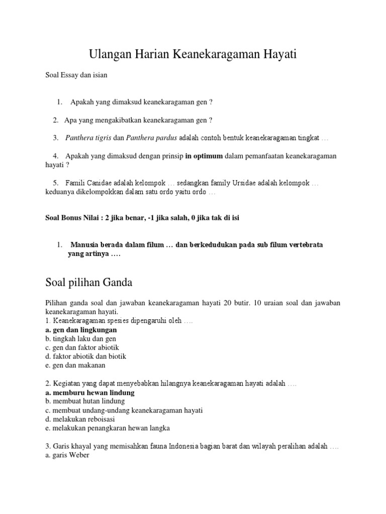 20201001 Contoh soal essay tentang keanekaragaman hayati beserta jawabannya. 2일 전20200911 Untuk sub materi atau sub bab yang dijadikan dalam penyusunan soal ini yaitu sebagai berikut. 24Rincian jelas mengenai Contoh Soal Essay Tentang Keanekaragaman Hayati Beserta Jawabannya.