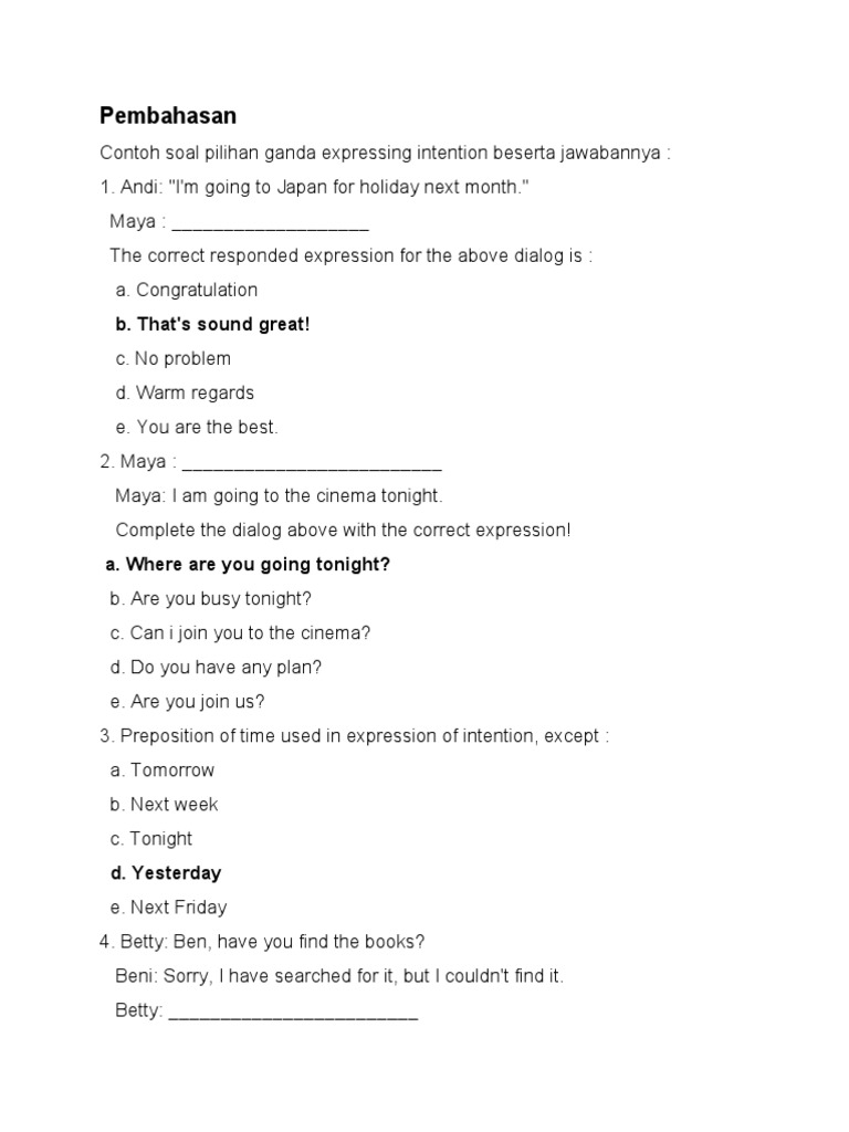 Contoh Soal Expressing Intention Pilihan Ganda Dan Jawabannya Contoh Soal Terbaru