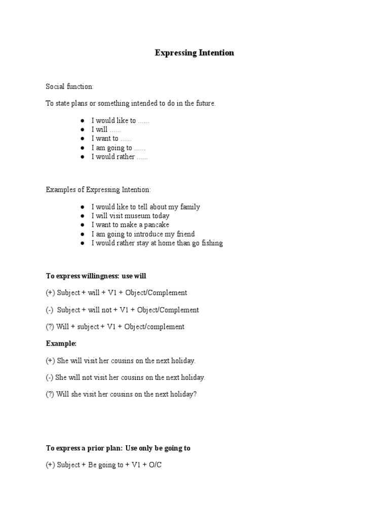 English Is Fun Expressing Intention