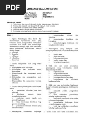 Kumpulan Soal Soal Geografi Sma Kelas Xi