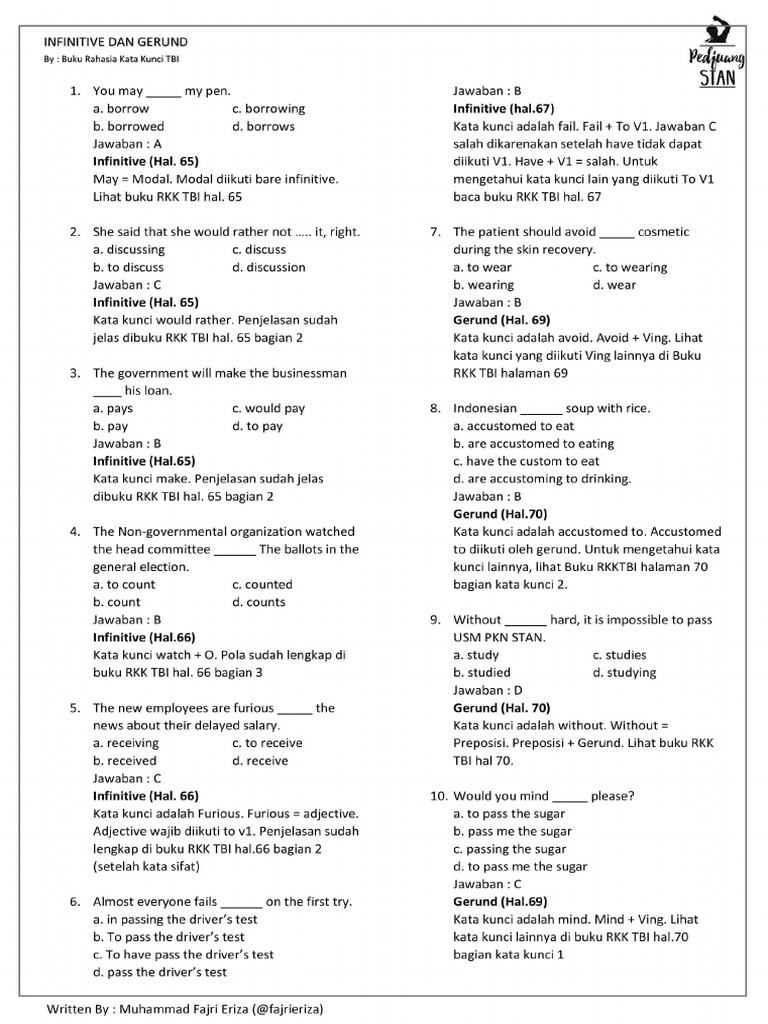 Latihan Soal Gerund Dan Infinitive Pdf