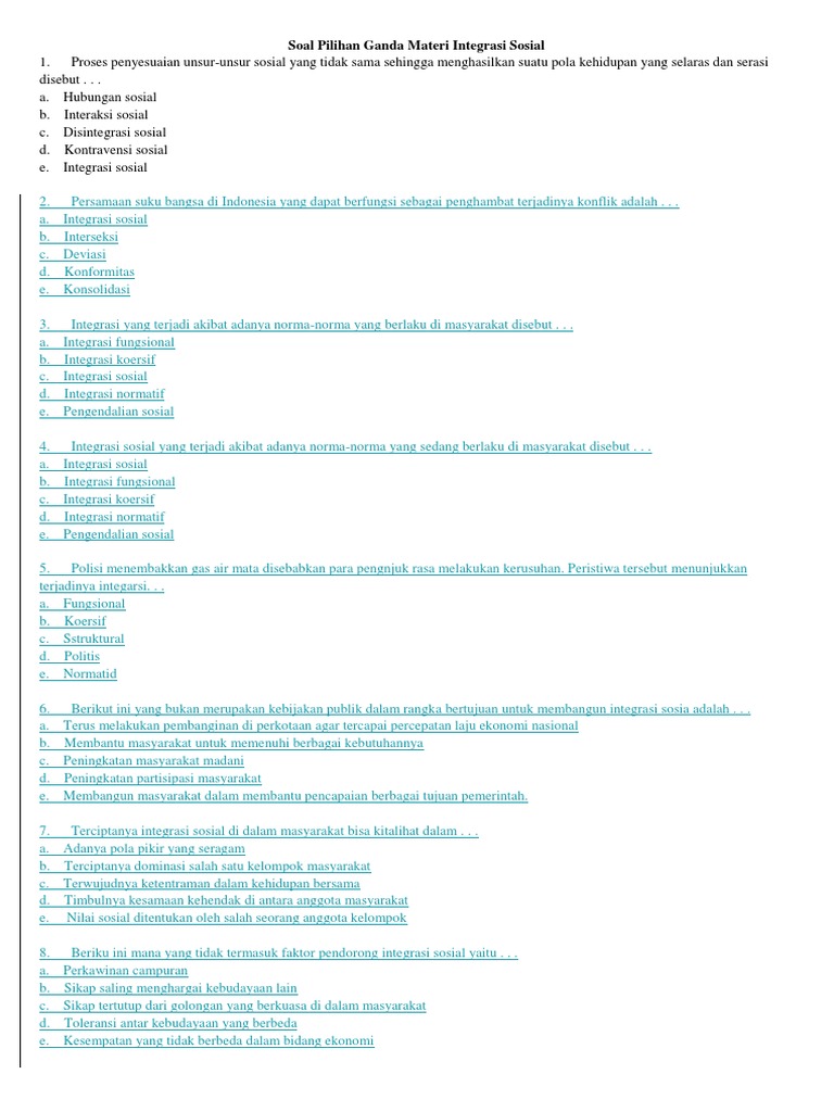 9Soal Pilihan Ganda Konflik dan Integrasi dalam Kehidupan Sosial. Dalam Test PPPK dan CPNS sendiri seringkali muncul. Unsur-unsur penyebab integrasi sosial.
