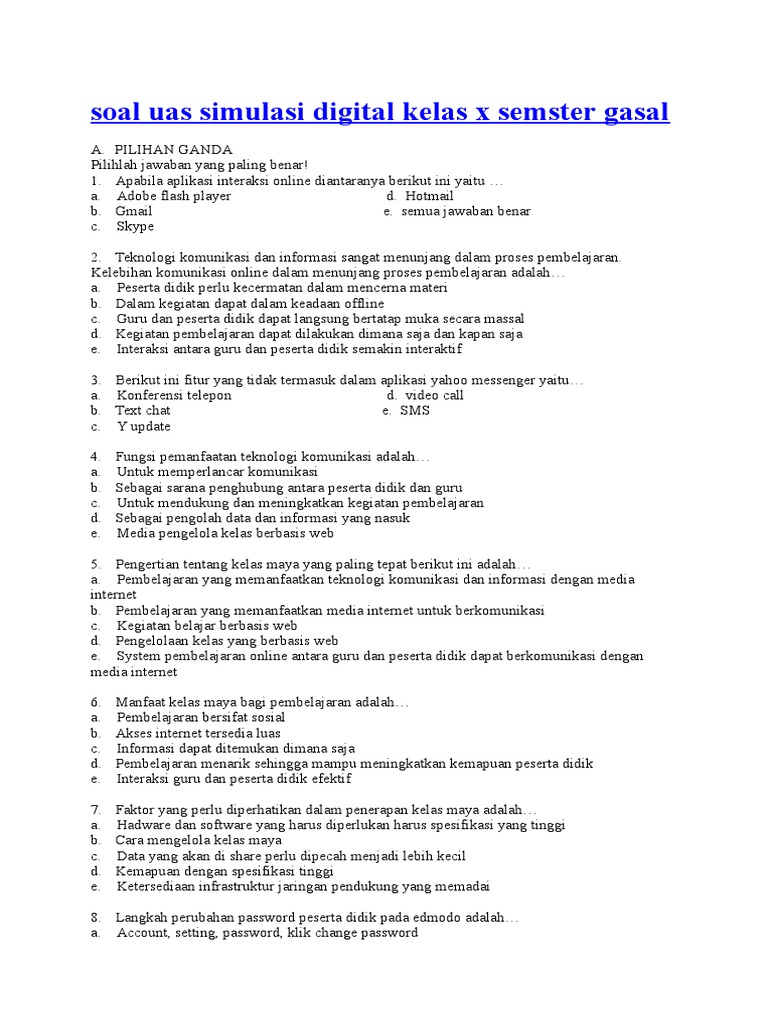 Soal Dan Jawaban Simulasi Digital Kelas X Pdf