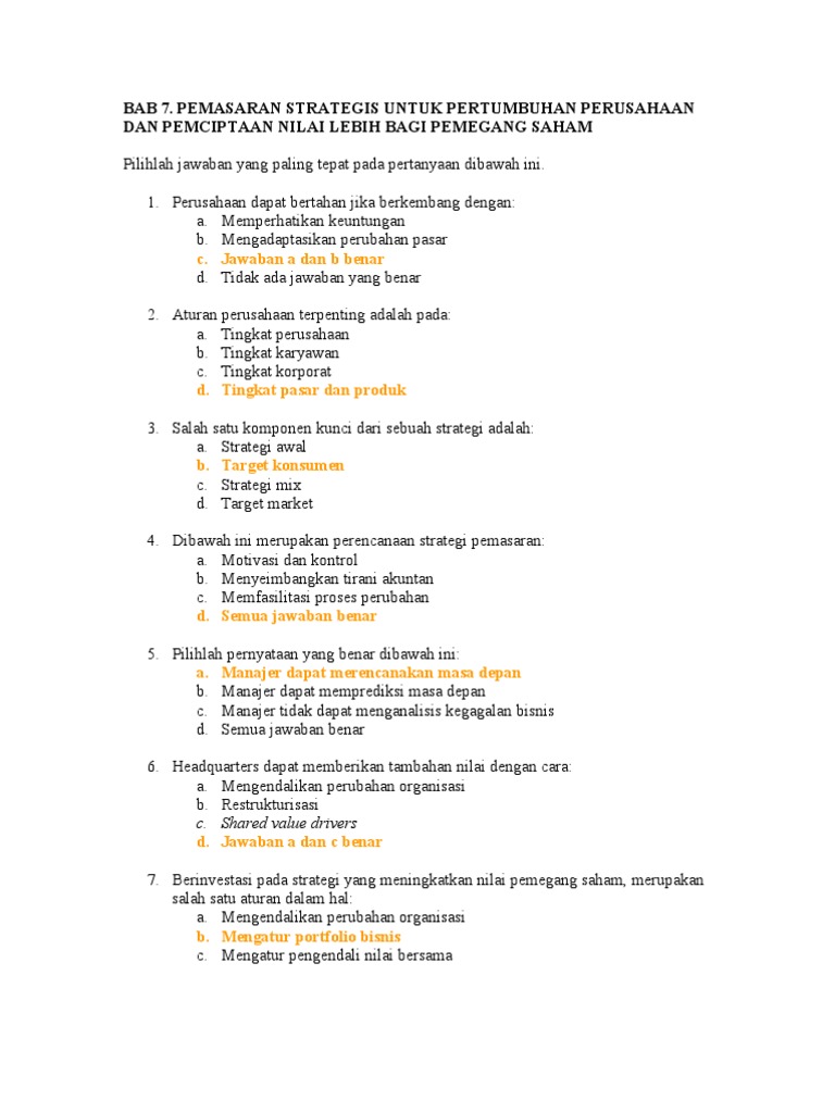 Contoh Soal Pg Untuk Manajemen Pemasaran Docx Document