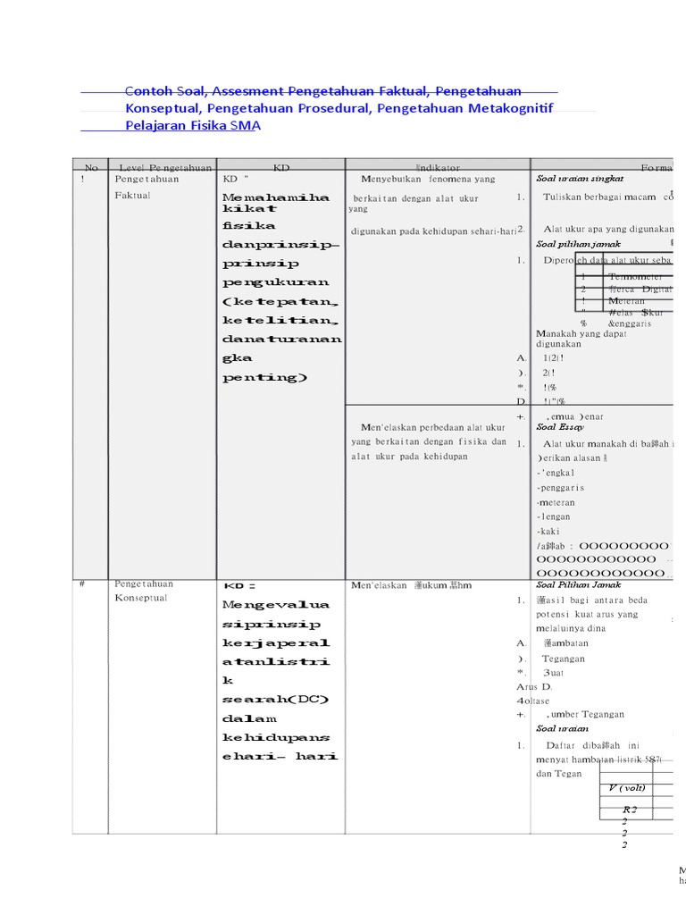 339022513 Contoh Soal Assesment Pengetahuan Faktual Konseptual Prosedural Metakognitif Docx Pdfcoffee Com