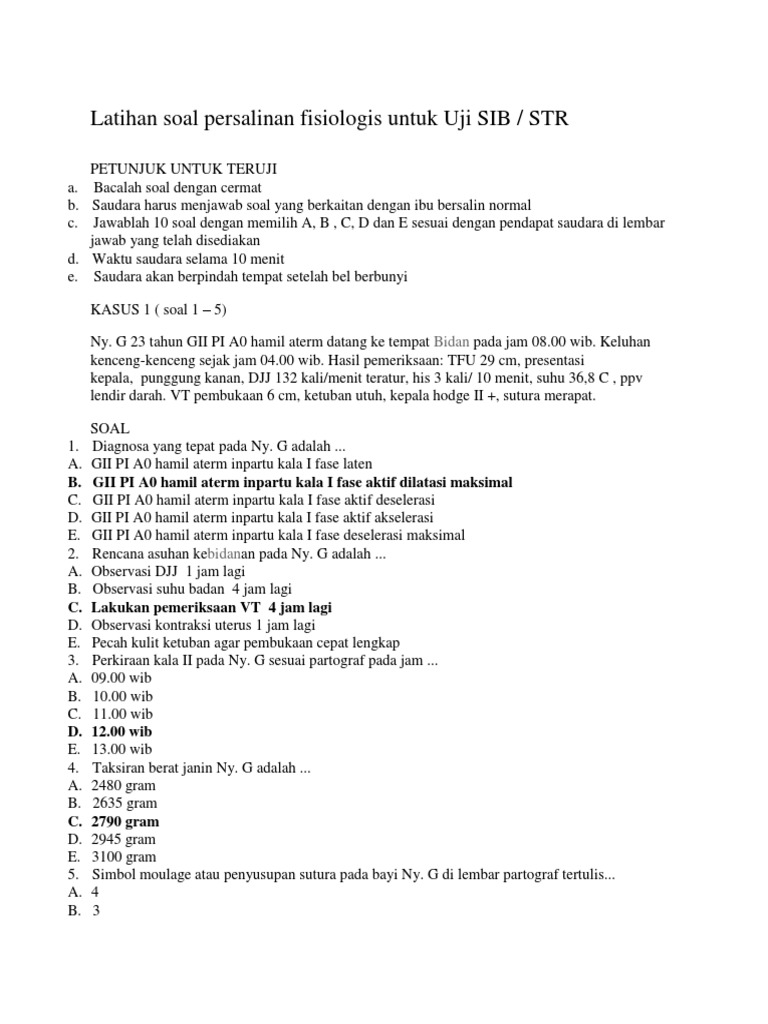 Latihan Soal Persalinan Fisiologis Untuk Uji Sib Pdf