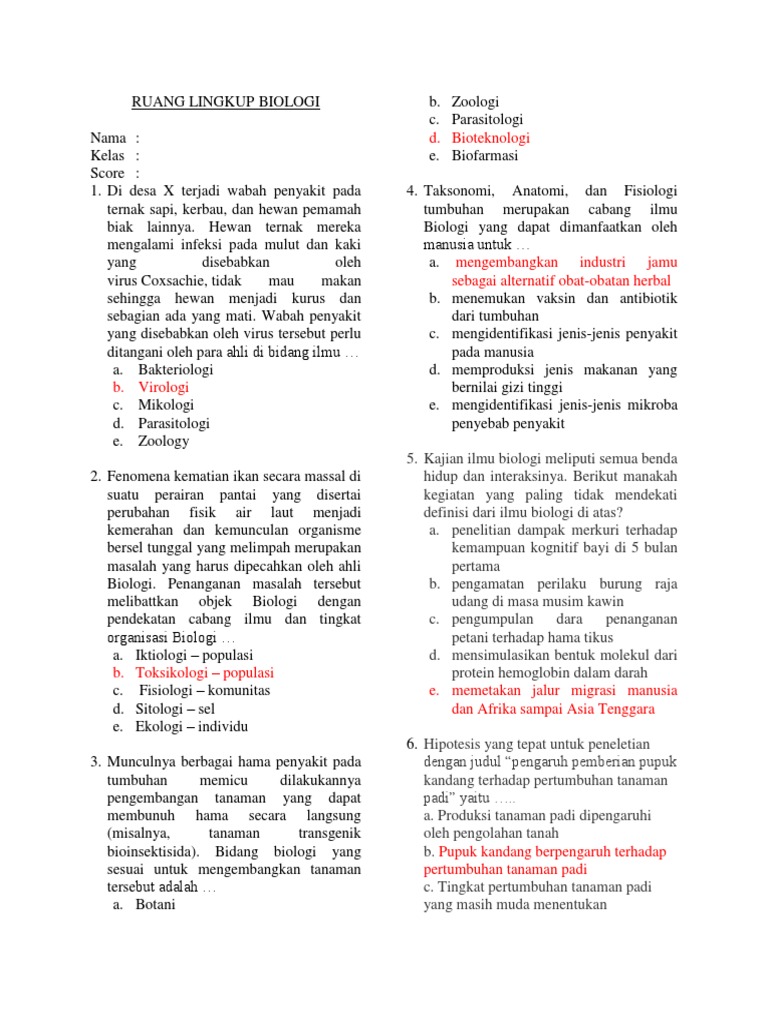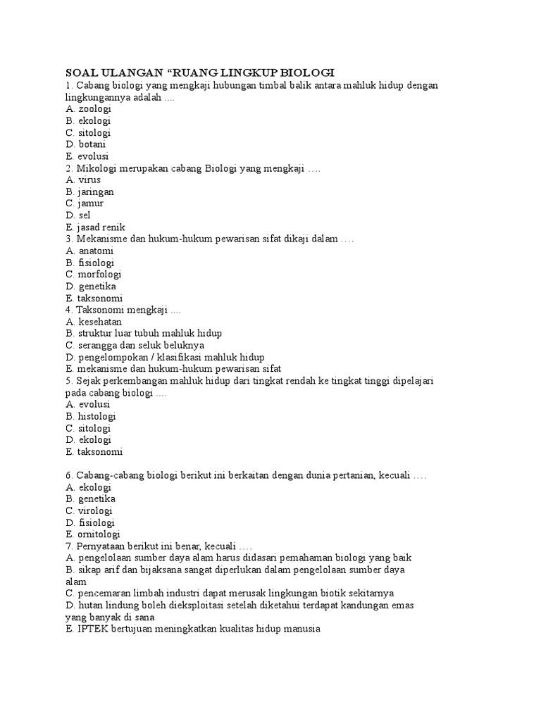 Contoh soal ruang lingkup biologi. X 3 Kurikulum. 18Biologi Contoh Soal Ruang Lingkup Biologi Pilihan Ganda Contoh Soal Ruang Lingkup Biologi Pilihan Ganda Linda Ayu Diposting di 18 Mei 2021 Tagged with Ruang Lingkup Biologi. B Yayuk Farida Kusumadewi SMAN 1 Trenggalek KARTU SOAL PILIHAN GANDA Mata Pelajaran.