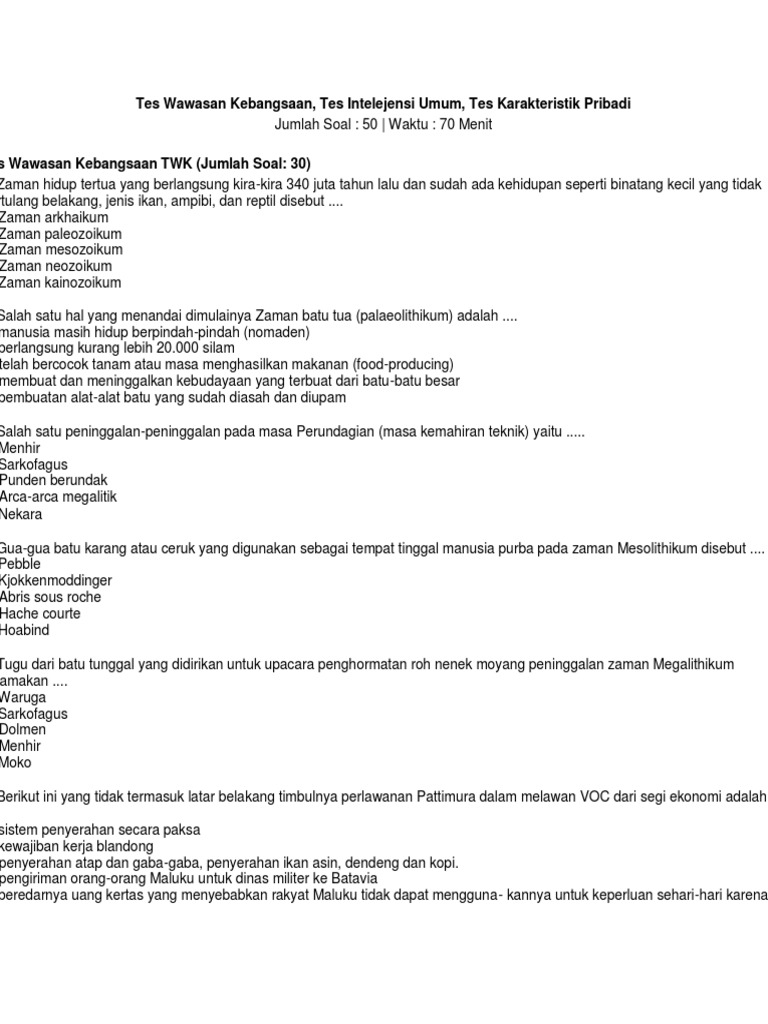 Tes Wawasan Kebangsaan Tes Intelejensi Umum Tes Karakteristik Pribadi Pdf