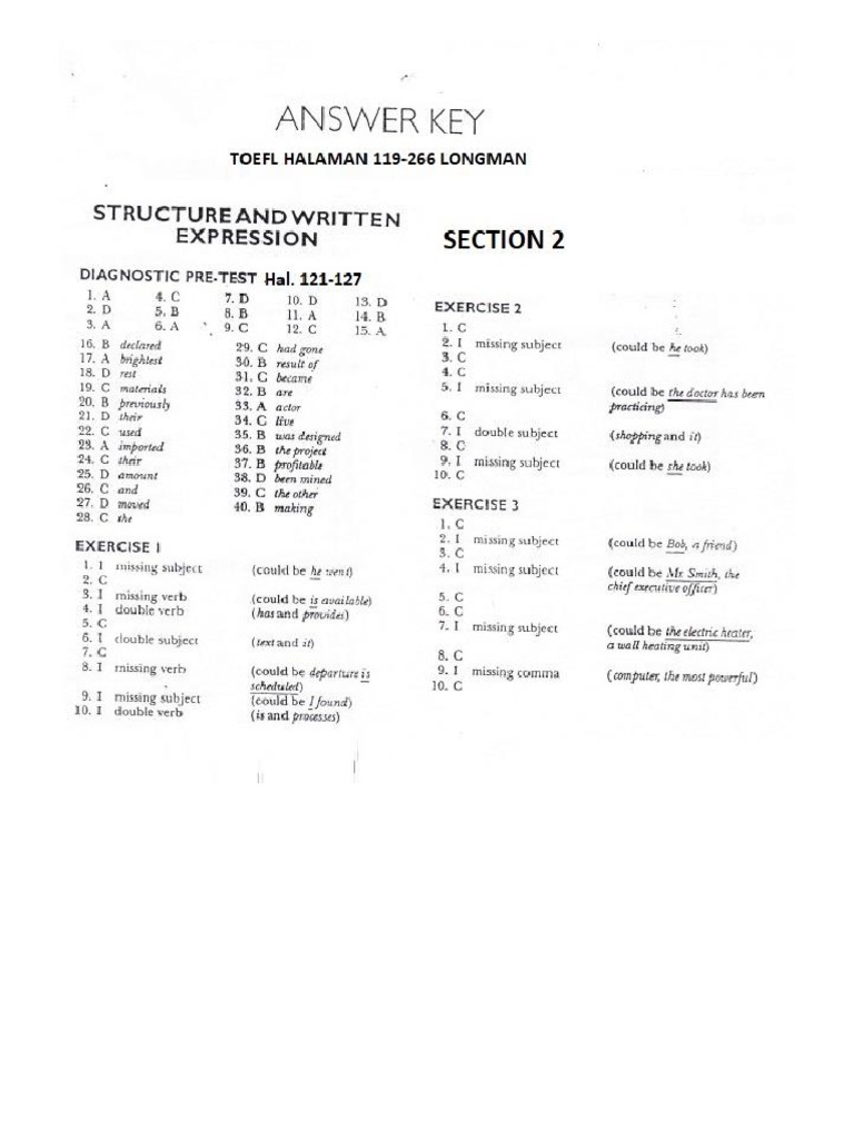 Answer Key Longman Complete Course For The Toefl Test 51 72 Pdf Lake Olive Oil