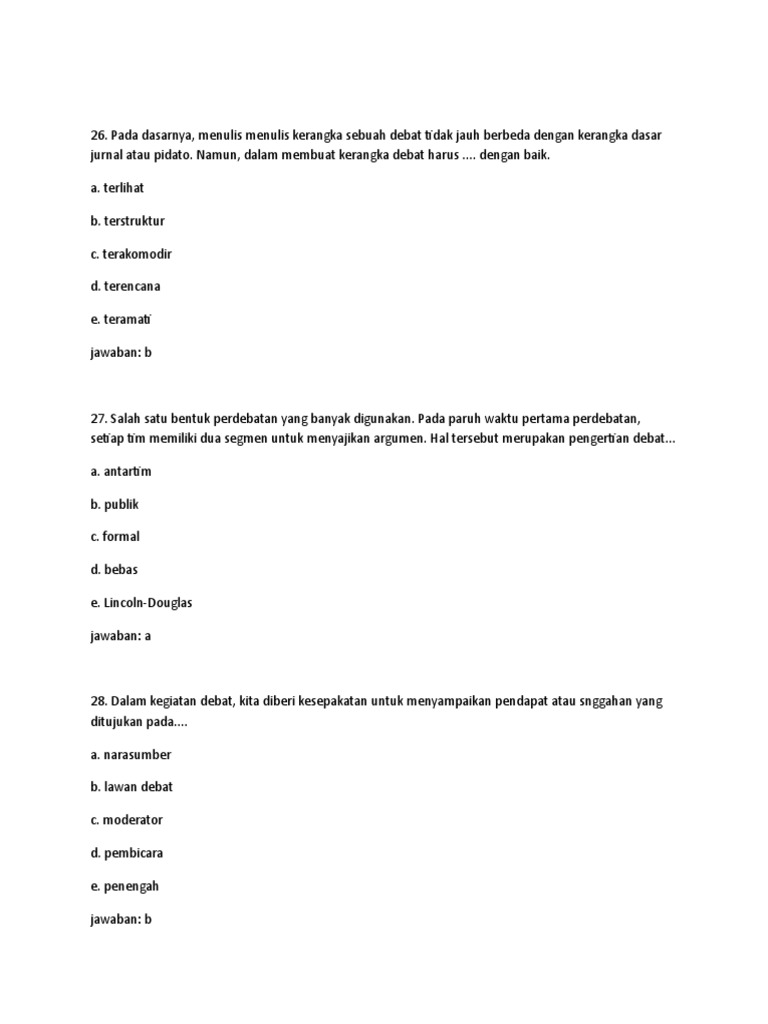 25 Contoh Soal Debat Pilihan Ganda Dan Jawaban