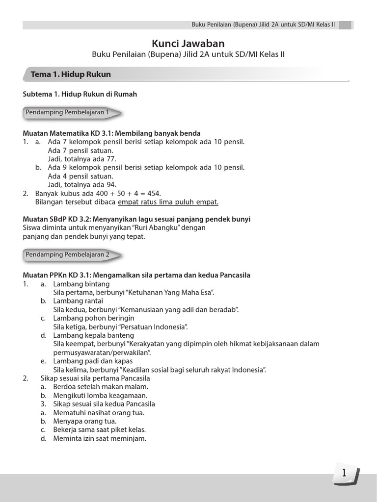 Kunci Jawaban Bupena 1a K13 Revisi Pdf