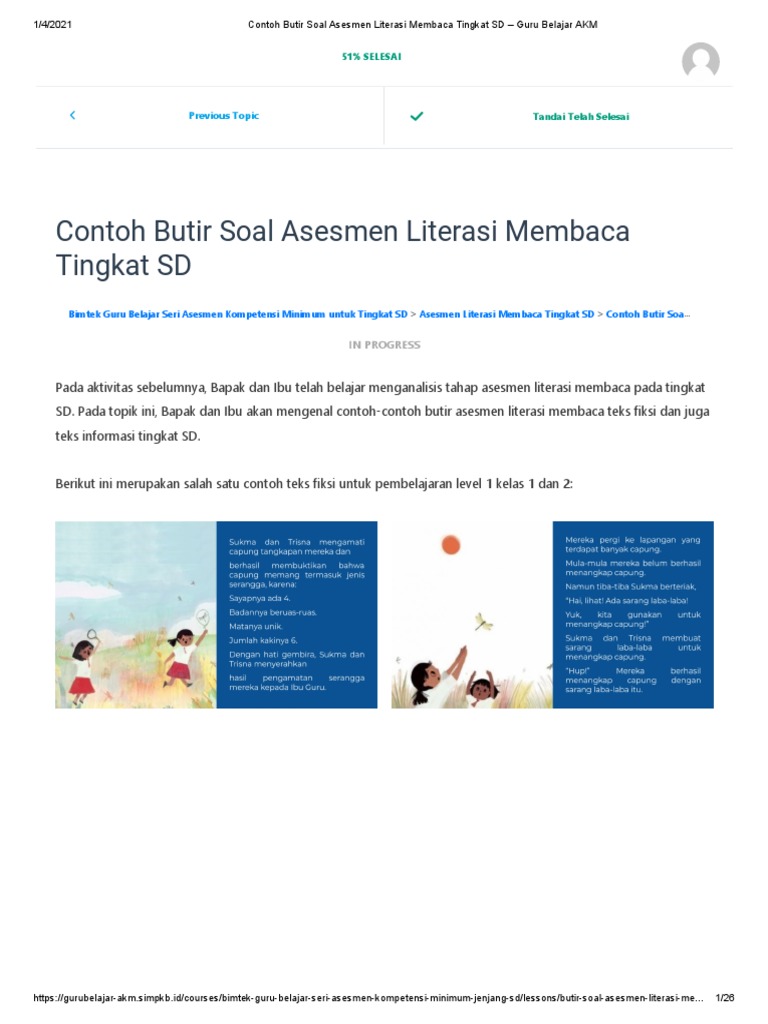 Contoh Butir Soal Asesmen Literasi Membaca Tingkat Sd Guru Belajar Akm