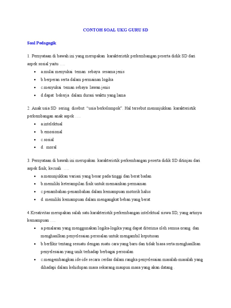 Soal Ukg Pedagogik Sd Kunci Jawaban Pdf