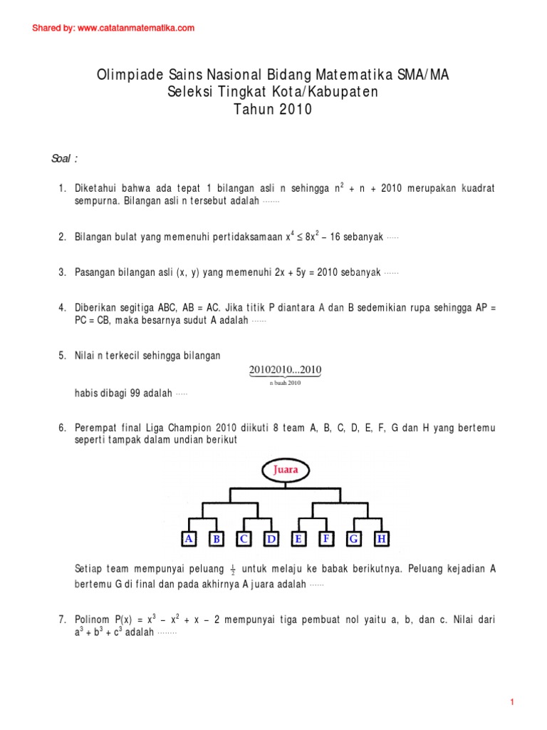 Download Pembahasan Olimpiade Matematika Sma Osk Tahun 2010 2018 Catatan Matematika