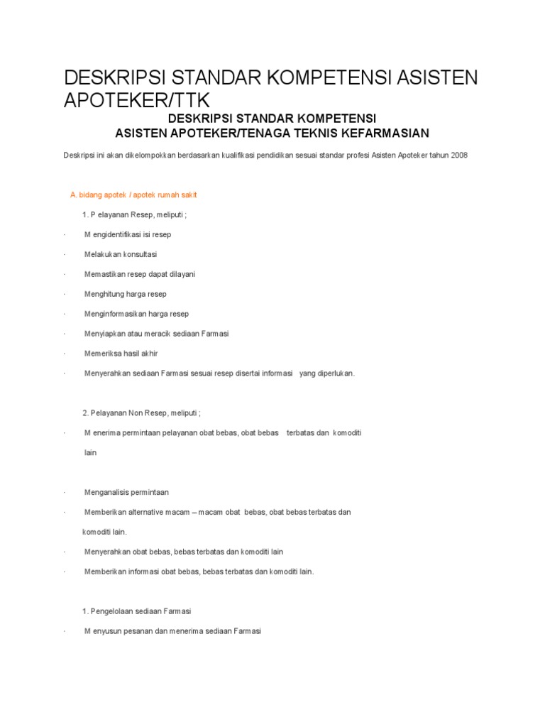 Deskripsi Standar Kompetensi Asisten Apoteker