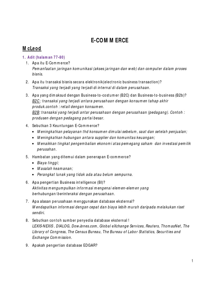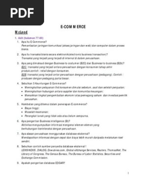 Definisi E-Business dan E-marketing. 1810 Pertanyaan Tentang E-Commerce. 16Bismillahirrohmanirohim ada beberapa pertanya terkait tentang e-business untuk tema dasar ebusiness dan ecommerce tidak masuk dalam topik ini karena sudah didiskusinya di group sebelumnya.