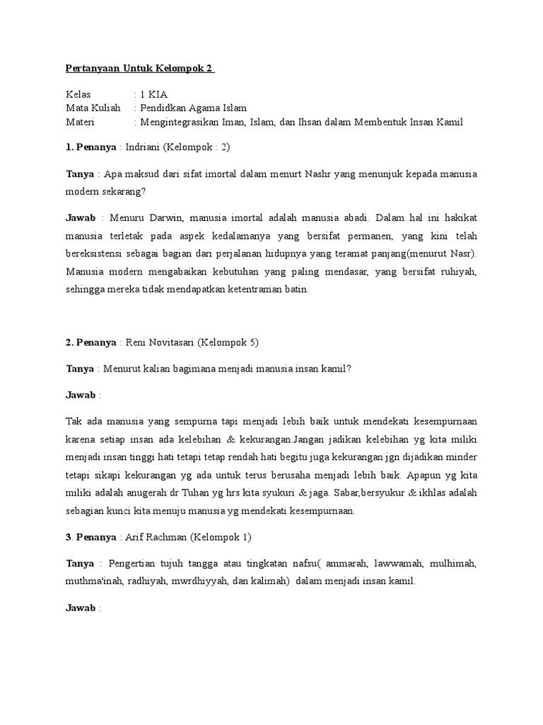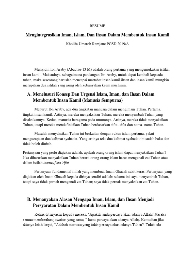 Pertanyaan Mengintegrasikan Iman Islam Dan Ihsan Dalam Membentuk Insan Kamil
