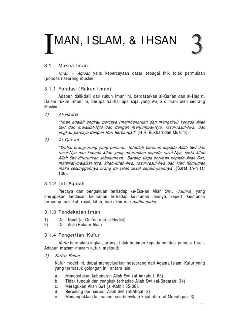 Amalan batin dan hati yang meliputi iman. Menggali sumber teologis historis dan filosofis tentang iman islam dan ihsan sebagai pilar agama isla m dalam membentuk insan kamil. Dan sungguh islam dan iman itu tidak dapat dipisahkan.