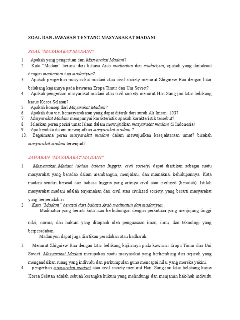 Soal Dan Jawaban Tentang Masyarakat Madani Pdf