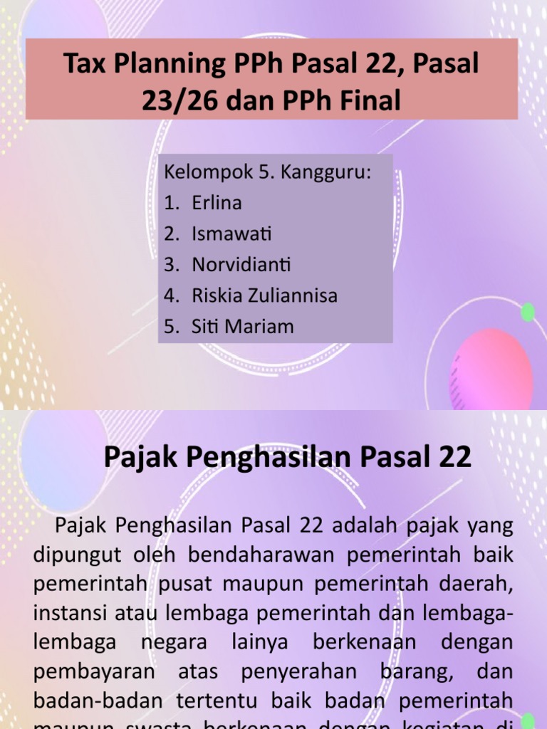 Tax Planning Pph Pasal 22 Pasal 23 26 Dan Pph Final