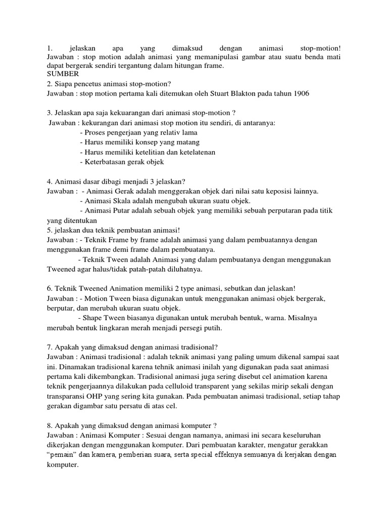 Soal Dan Jawaban Animasi Stop Motion Jawaban Soal