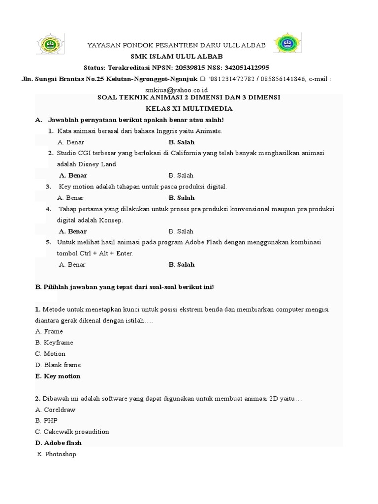Multimedia Smk Palebon Semarang Kisi Kisi Soal Ujian Kunci Animasi Untuk Smk Jurusan Multimedia Kelas Xi