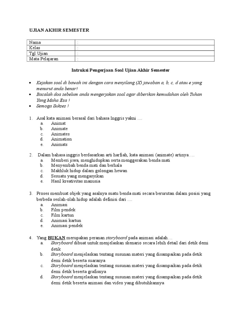 Soal dan jawaban pilihan ganda instalasi wan. Animasi Tradisional dan Animasi 2D e. Kenapa animasi tradisional disebut juga cel animation.