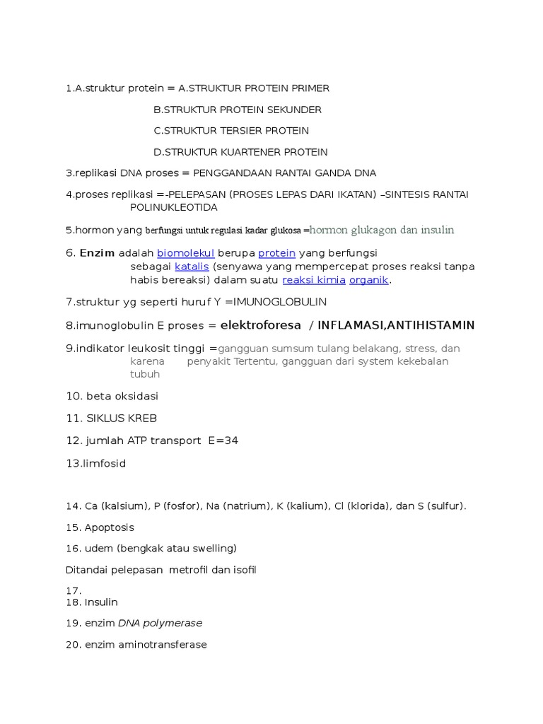 Kumpulan Pertanyaan Dan Jawaban Biokimia