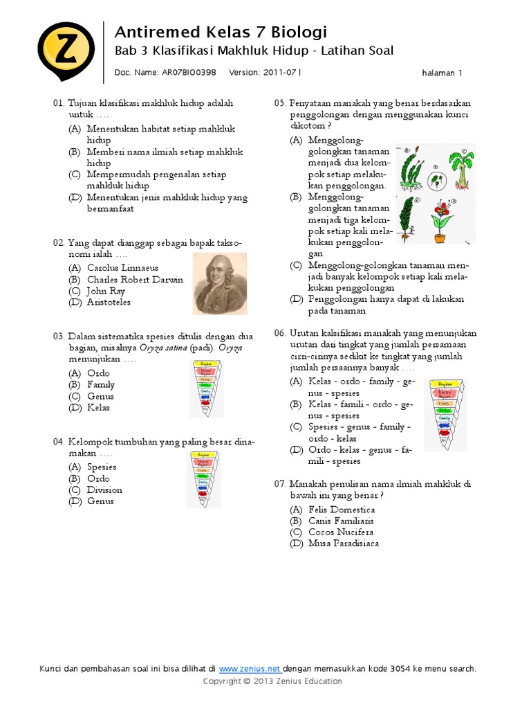 Contoh Soal Klasifikasi Makhluk Hidup Kelas 7 Pdf Dapatkan Contoh