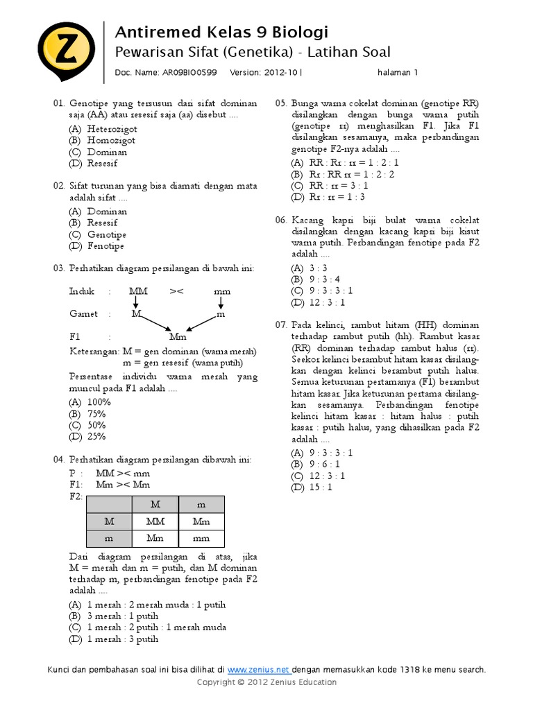Pdf Soal Pewarisan Sifat Kelas 9 Smp Jawabanku Id