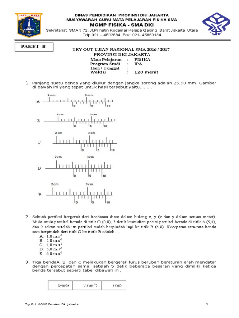 Soal Try Out Ucun Fisika Sma Prodi Ipa Dki Jakarta Tahun 2019 Diajar Nyaho Diajar Nyaho