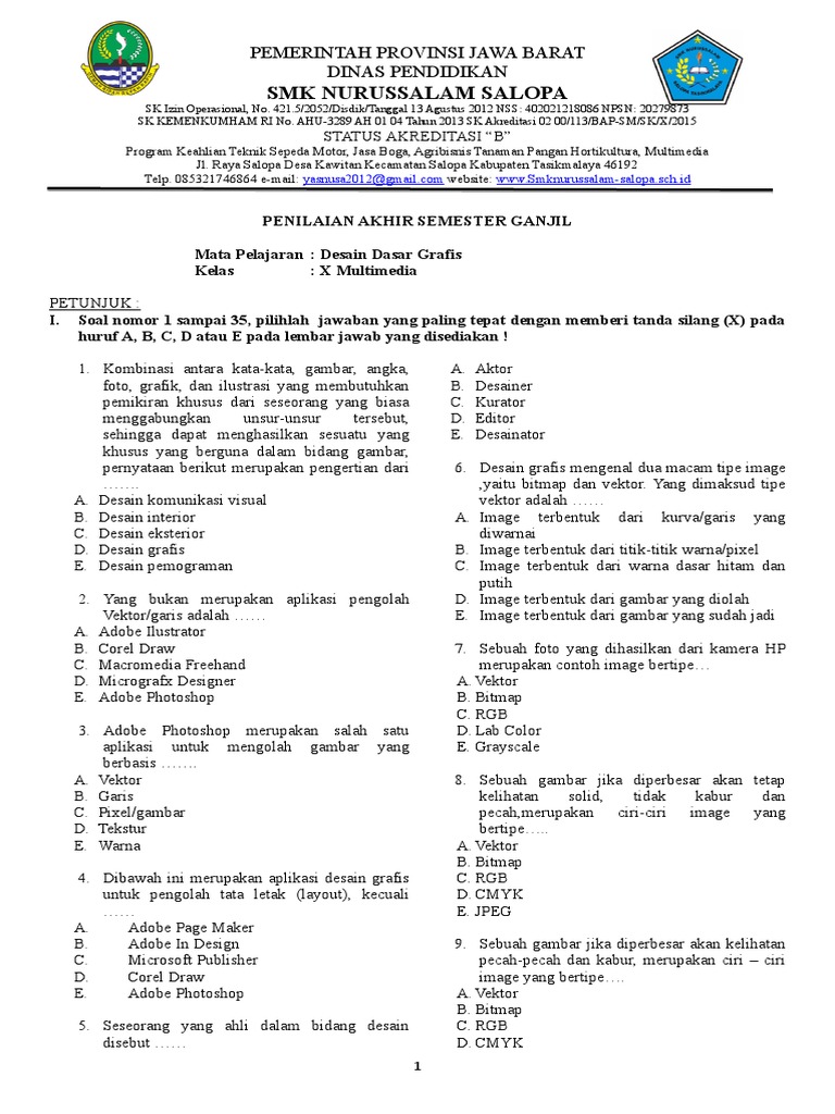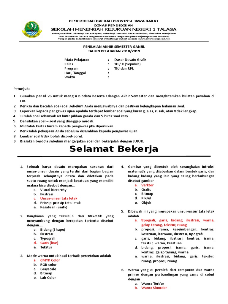 Soal Dan Jawaban Dasar Desain Grafis Kelas X Semester 1 Kumpulan Contoh Surat Dan Soal Terlengkap