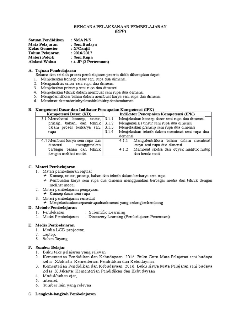 Rpp Revisi 2017 Seni Budaya Seni Rupa Kelas 11 Sma