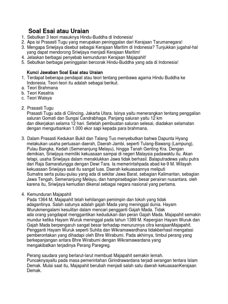 Soal Essay Tentang Kerajaan Islam Di Indonesia Beserta Jawabannya