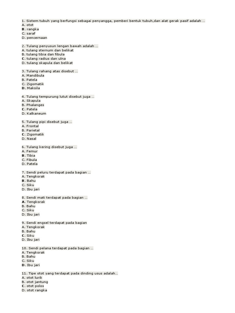 Soal Dan Jawaban Rangka Dan Otot