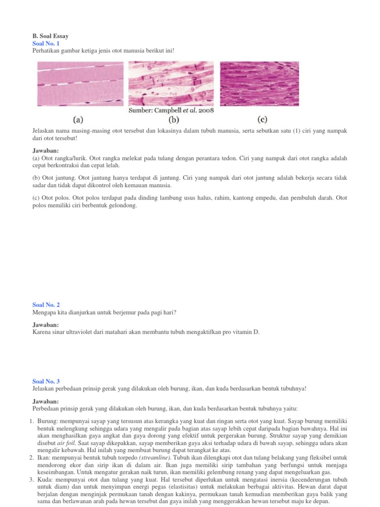 Contoh Soal Jawaban Sistem Gerak Pada Manusia Otot Hingga Sendi