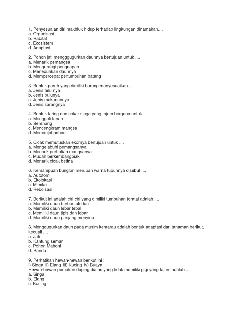 3Latihan soal ipa kelas 5. 29Setelah pada bab 2 kemarin kita membahas tentang tumbuhan hijau pada kesempatan kali ini sekolah2000 akan membahas tentang contoh soal penyesuaian diri makhluk hidup terhadap lingkungannya lengkap dengan kunci jawabannya.