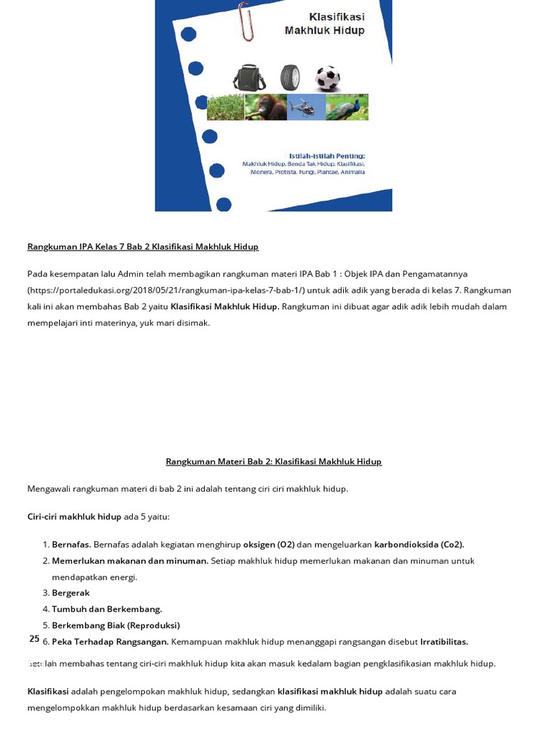 Rangkuman Ipa Kelas 7 Bab 2 Klasifikasi Makhluk Hidup Portal Edukasi