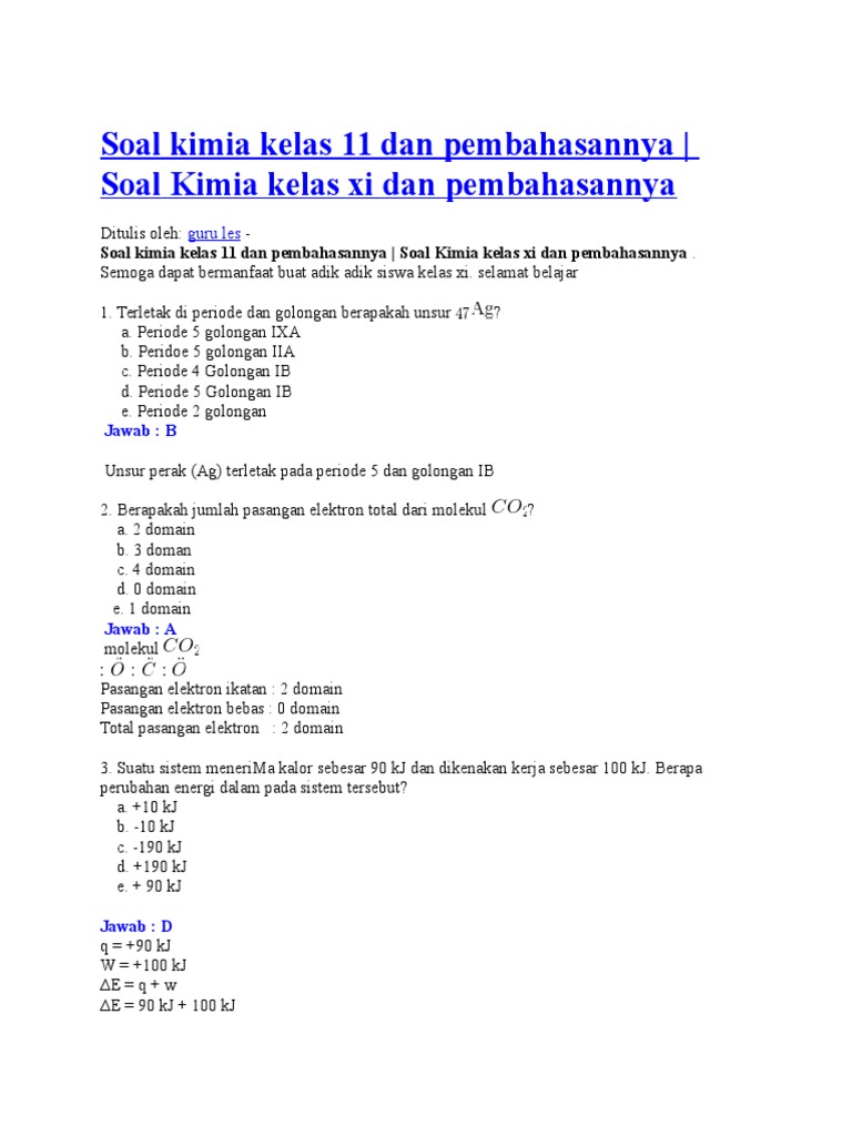 Soal Dan Jawaban Kimia Kelas Xi Semester 1 Kumpulan Contoh Surat Dan Soal Terlengkap
