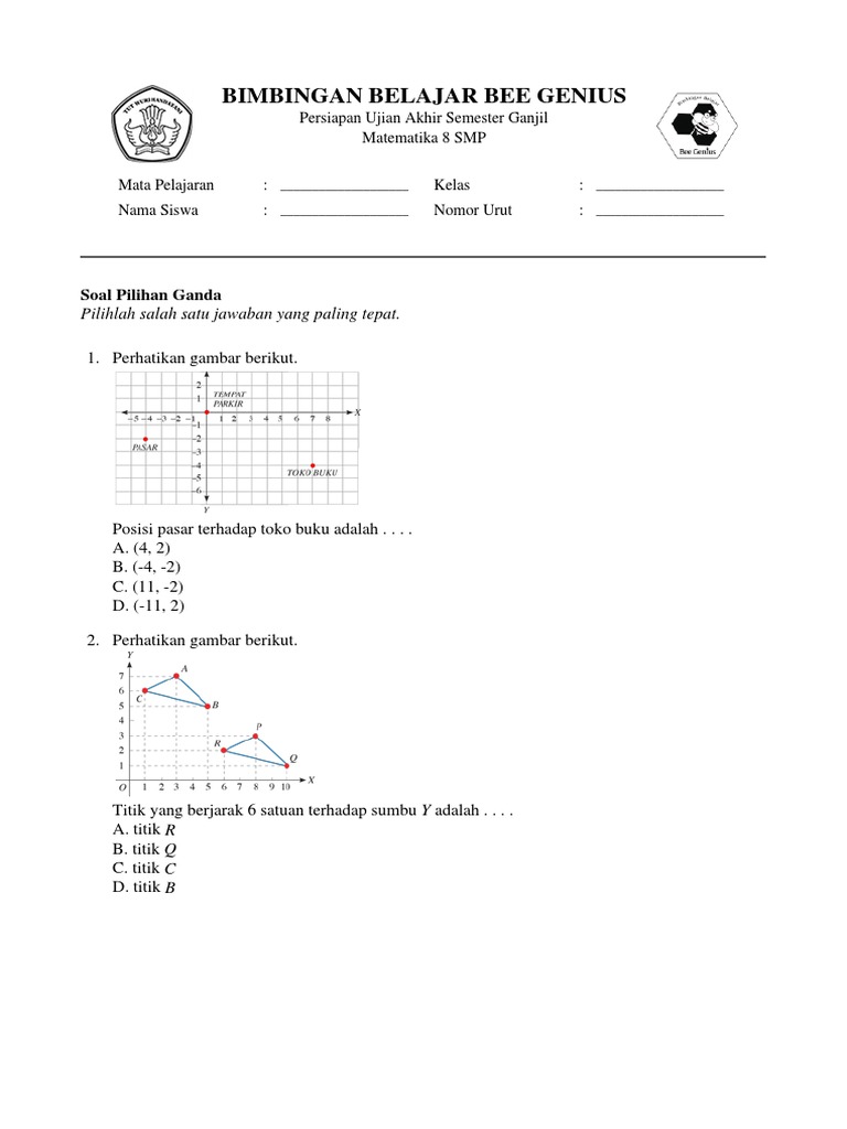 Contoh Soal Hots Matematika Smp Kelas 8 Materi Koordinat CartesiusGARIS HIMPUNAN kelas 7 KELAS 8 kelas 9 kesebangunan LURUS. 26Soal ulangan harian mtk kelas 8 tentang koordinat cartesius kurikulum 2013. Materi dari soal PTS Matematika Kelas 8 Semester 1 K-13 terdiri dari 3 BAB yaitu.