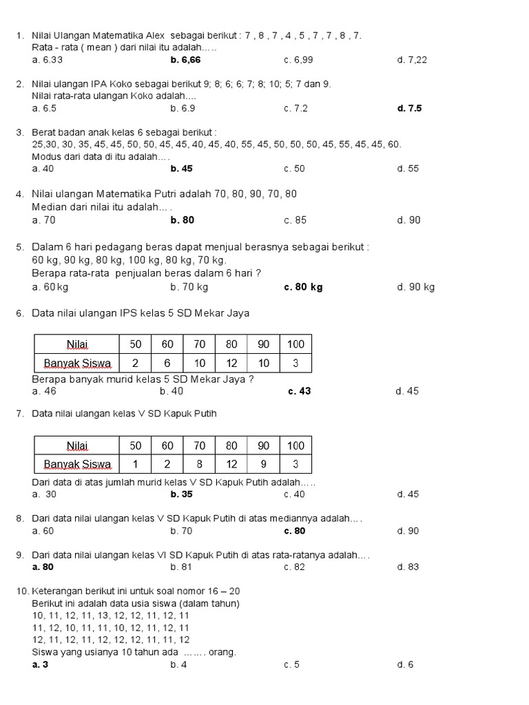 Soal Matematika Sd Kelas 6 Menentukan Rata Rata Dan Modus Download Buku Gratis