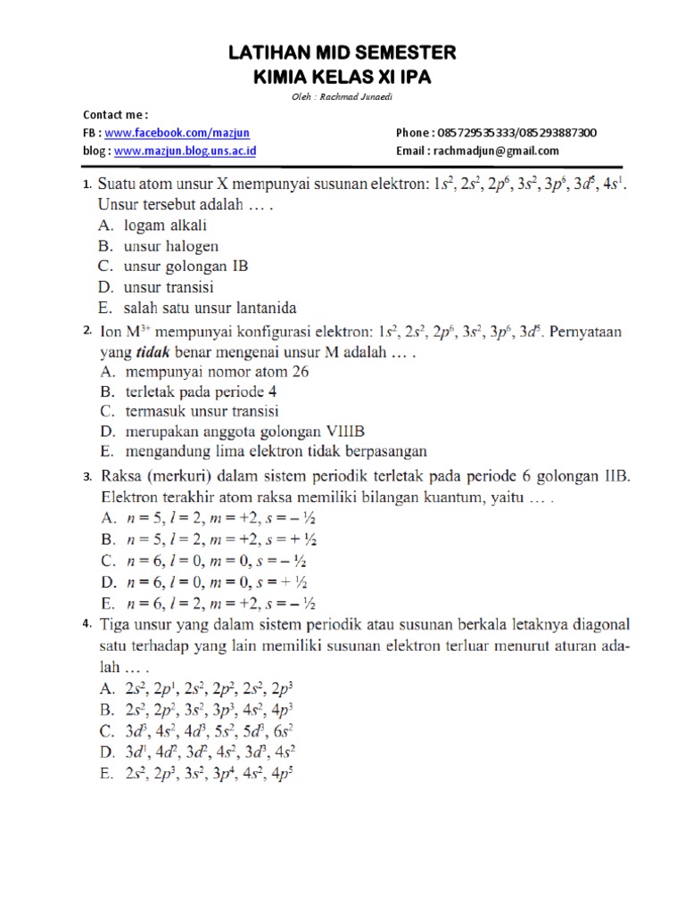 Soal Kimia Mid Semester 1 Kelas Xi Ipa