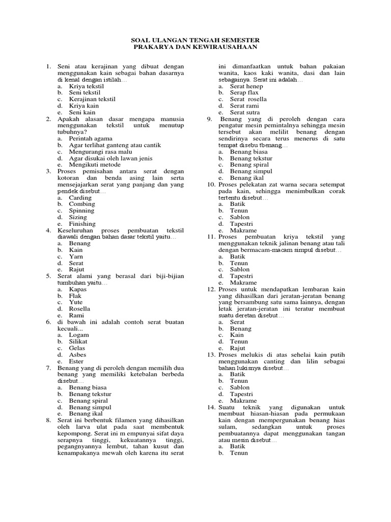 Contoh Soal Prakarya Kelas 12 Semester 2 Dan Jawabannya K13