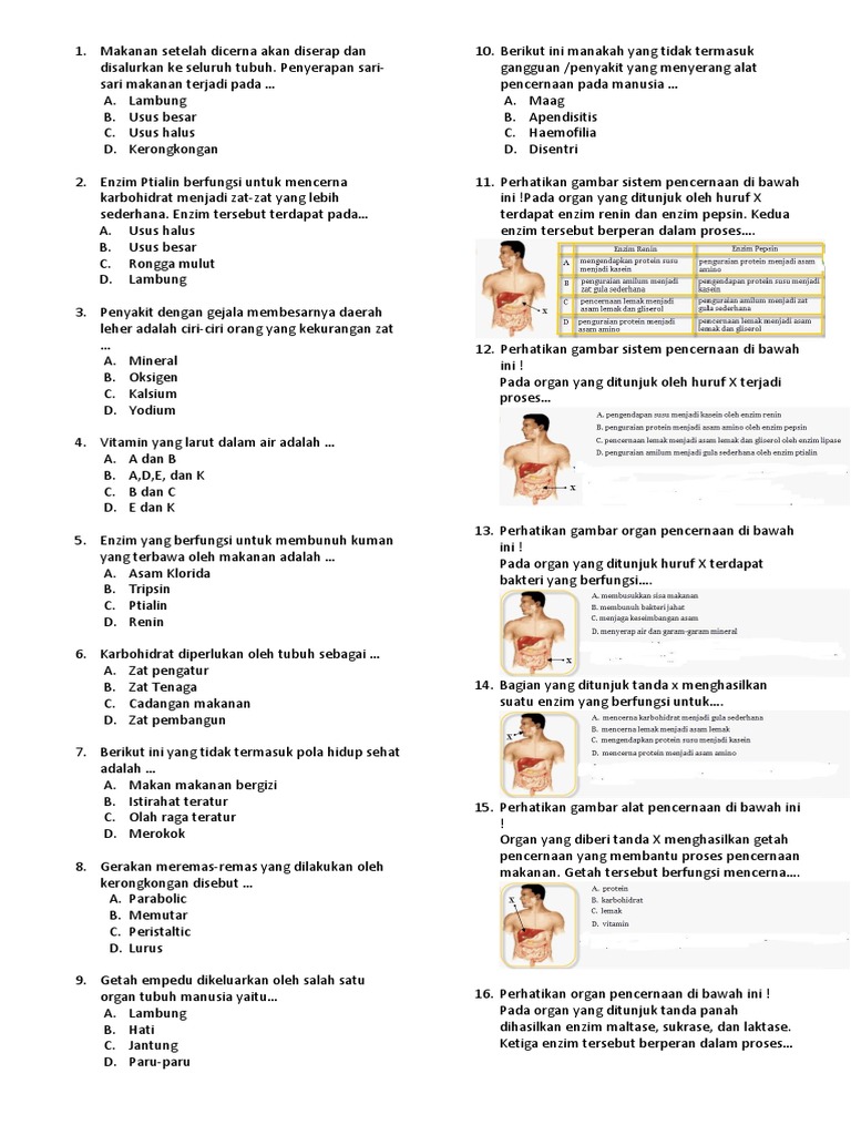 20210326 Contoh soal sistem pencernaan kelas 11 pilgan dan kunci jawaban. Contoh Soal Sistem Pencernaan Manusia Nomor 5. View SOAL UH 5.