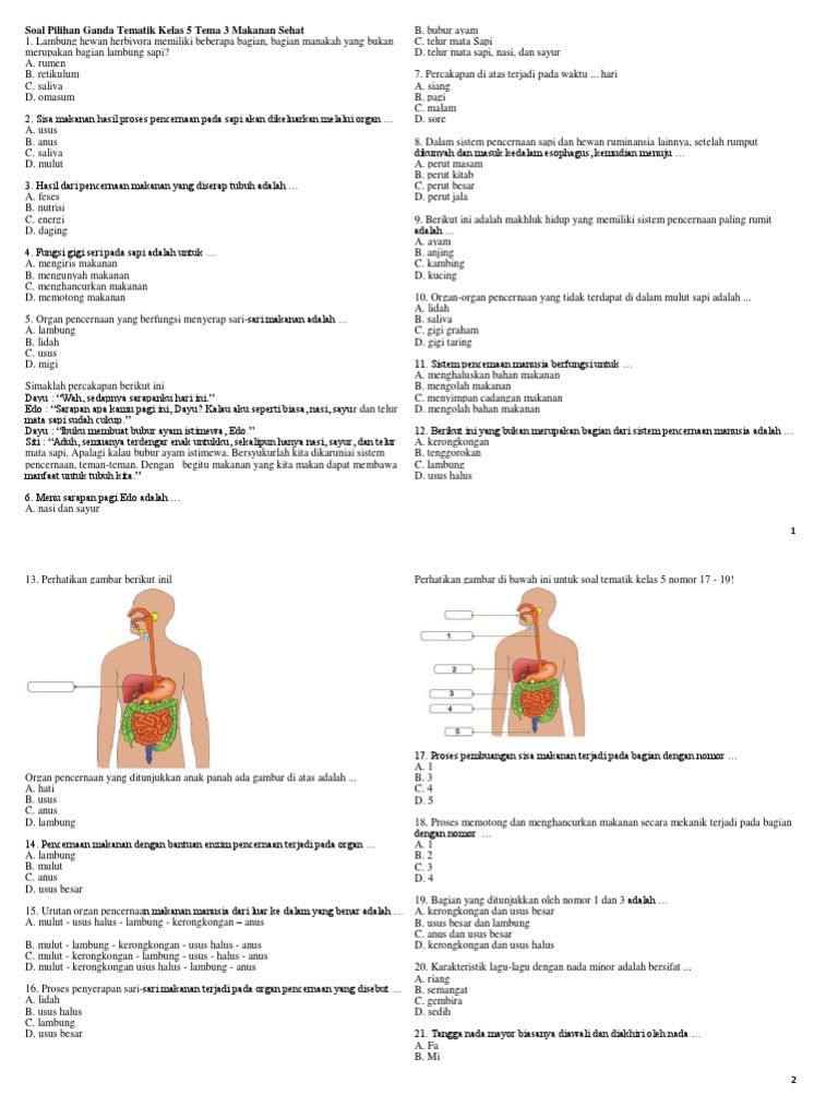 Soal Pencernaan Manusia Kls 5 Sd Pdf Jawabanku Id
