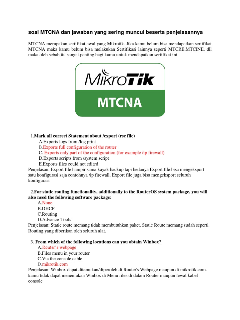Soal Mtcna Dan Jawaban Yang Sering Muncul Beserta Penjelasannya Pdf
